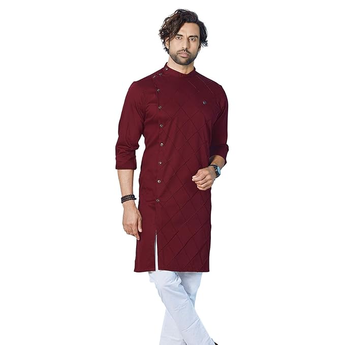 Buy Eagle Bird Men S Ethnic Long Kurta Pyjama Set Full Sleeves Ethnic Kurtas For Men Wine Color At Amazon In